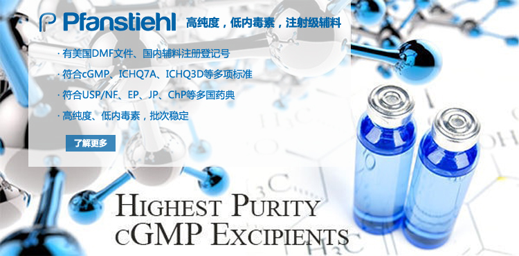 “熱烈祝賀Pfanstiehl的注射級甘氨酸Glycine(G-140)喜獲CDE登記號F20250000403, 這是Pfanstiehl產品獲得的第18個CDE登記號!”甘氨酸在醫藥輔料制劑中應用廣泛,, 可作為緩沖劑,增溶劑,穩定劑等,具有諸多優勢。Pfanstiehl秉承一貫高品質理念,為滿足全球生物制藥行業對于高品質甘氨酸的需求,隆重推出的注射級甘氨酸Glycine (G-140), 具有超高純度,超低內毒素,超低金屬殘留的特點,單獨檢測29種金屬離子,并且新增DNA,RNA,DNA酶,RNA酶和脂肪酶,亞硝酸鹽等多項質量指標的檢測,符合多國藥典規定(USP, EP, BP, JPE, ChP),可用于生物治療性藥物和疫苗的生產。產品信息:· 產品名稱:Glycine, High Purity, Low Endotoxin, Low Metals, USP, EP, BP, JPE, ChP (G-140)· 中文名稱:甘氨酸· 分子式:C2H5NO2· 分子量:75.07 g / mol· CAS號:56-40-6· 產品貨號:G-140產品特點: · 超高純度,超低內毒素,超低微生物含量,超低金屬雜質殘留· 質量指標新增DNA,RNA,DNA酶,RNA酶,脂肪酶和亞硝酸鹽檢測· 符合多國藥典:USP, EP, BP, JPE, ChP· 符合ICH Q3D標準· 符合GMP標準· 已獲DMF和CDE登記號 產品應用:· 緩沖劑· 穩定劑· 增溶劑如果您對Pfanstiehl注射級別Glycine G-140感興趣,歡迎聯系Pfanstiehl 中國區代理商北京西美杰科技有限公司獲得如下詳細的產品概況說明文件和測試樣品。Pfanstiehl Inc.最新產品系列如下,歡迎聯系北京西美杰科技有限公司獲取100g裝免費樣品。北京西美杰科技有限公司為Pfanstiehl中國代理,為客戶提供完善的技術支持與售后服務。歡迎撥打西美杰客服電話400-050-4006或者登陸網站www_xmjsci_com.pwuglu.mobi了解更多信息。 更多>西美杰介紹